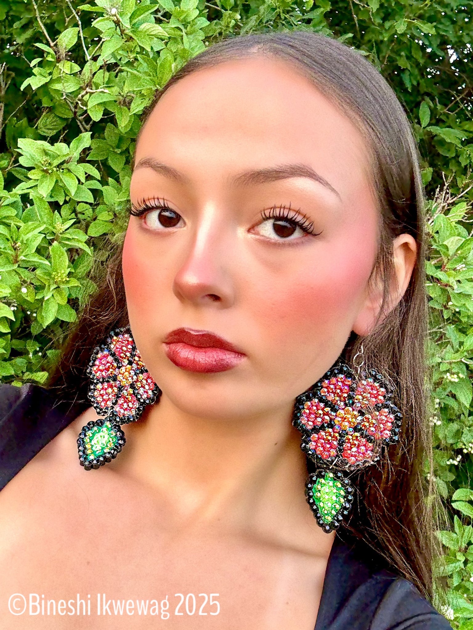 These big but light floral earrings feature a teardrop leaf! These fancies are 2.5” wide by 5” long.  One of a kind. Made by Angela LaRocque.